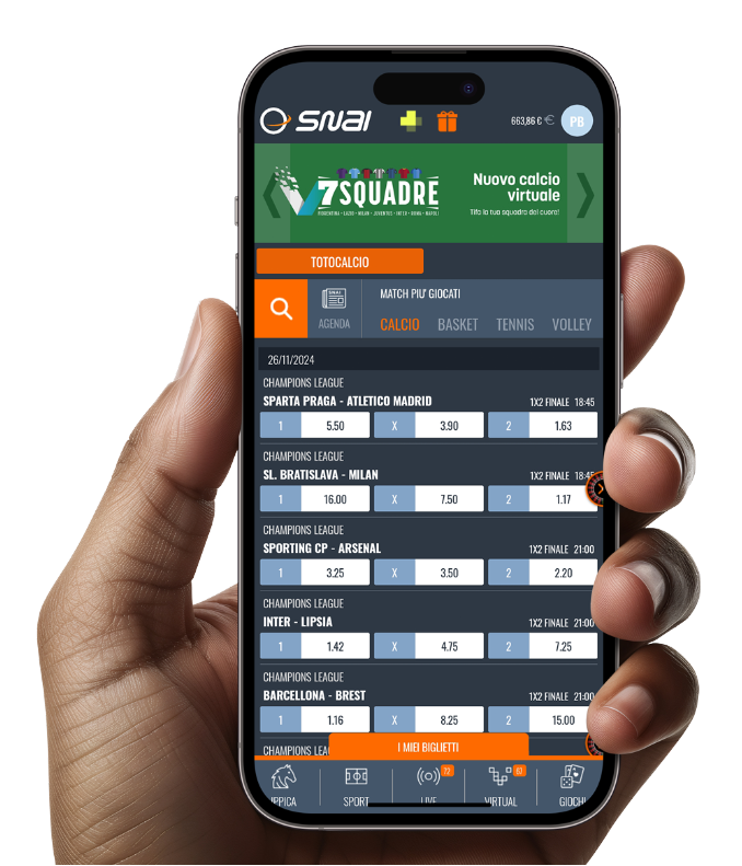 L'offerta è valida solo per i nuovi clienti che non abbiano mai avuto un conto gioco Snai ed è limitata ad una persona (codice fiscale), nucleo familiare, indirizzo di residenza, conto di gioco, indirizzo ip, dispositivo (sia mobile che fisso), mail e numero di telefono.