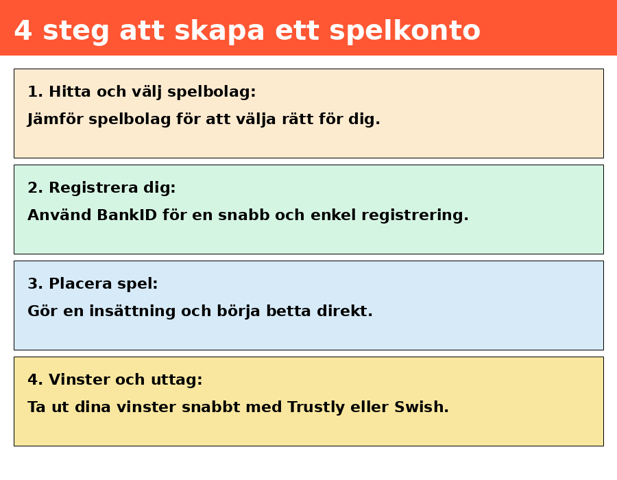 Att komma igång med betting online är både snabbt och smidigt. Här är 4 enkla steg för att registrera dig hos licensierade bettingsidor i Sverige: